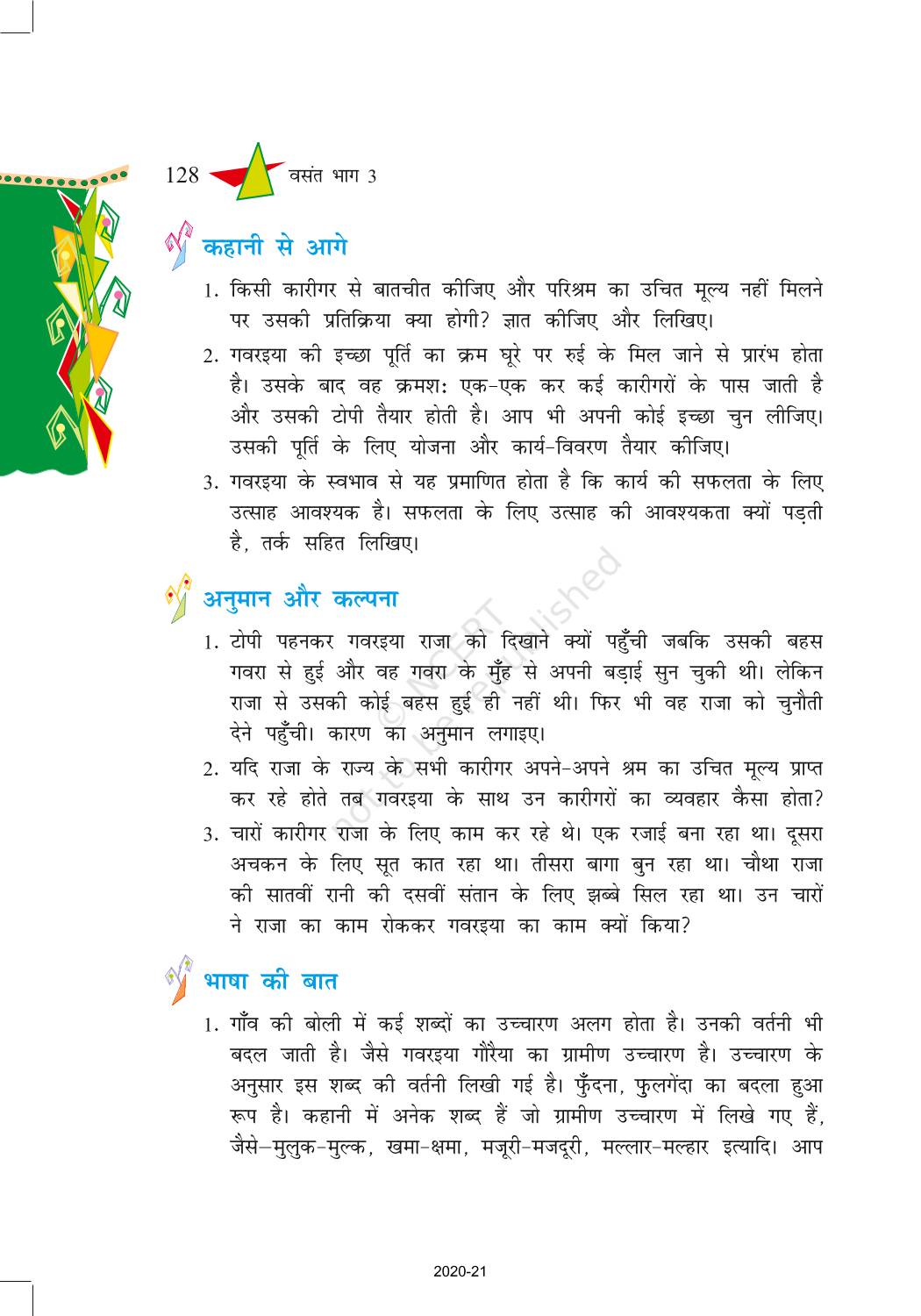 BeTrained.in has brought the NCERT books for class 8 Hindi Vasant Part 3 where you can find every topic explained in a detailed way. These books are recommended by CBSE and some other state boards. Most of the teachers also use these books for teaching in schools. It is also used as a reference to prepare the questions for mid-term and final exams. The topics are explained in a very easy language along with examples and diagrams. Also, ideal for comprehensive and thorough learning to develop a clear concept. The chapters in the books have illustrative examples and practice problems for getting a hold of any kind of concept.