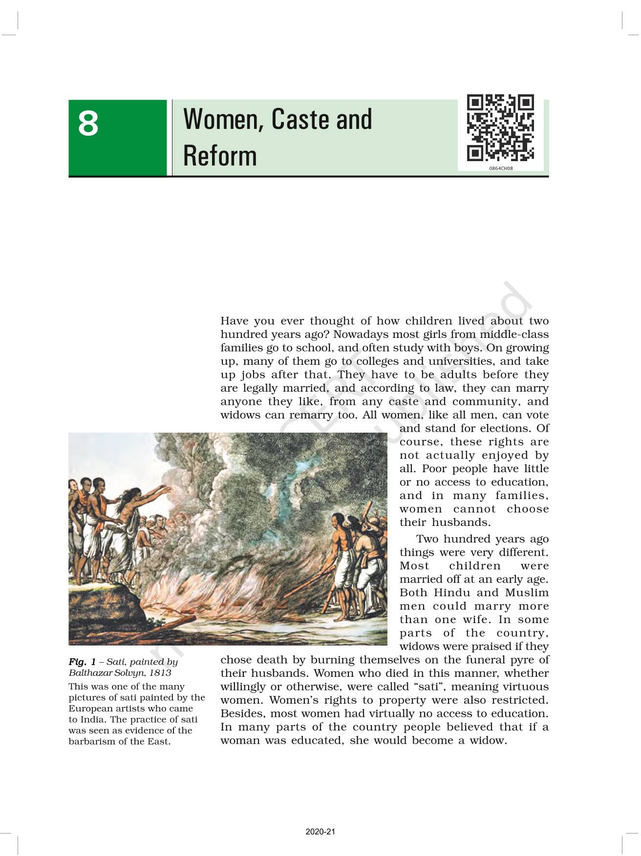 The time when students had limited options of choice for NCERT books wherein they need to go to the bookstore to buy the books but here at BeTrained.in, you can read the complete chapter-Women Caste And Reform of NCERT books for class 8 History Part II. If CBSE class 8 students are finding it hard to search for NCERT History Part II books online, then this is the right place as we have provided the textbooks of NCERT chapter wise. These books are available on our website for free along with NCERT Solutions and Exemplar solutions.