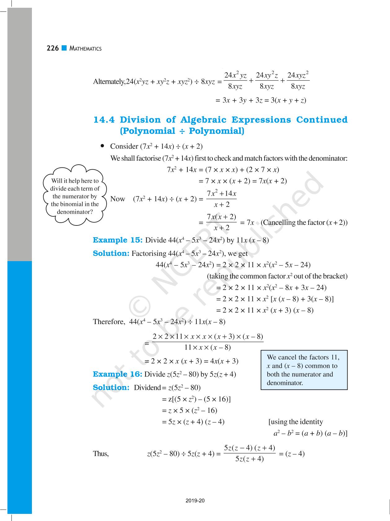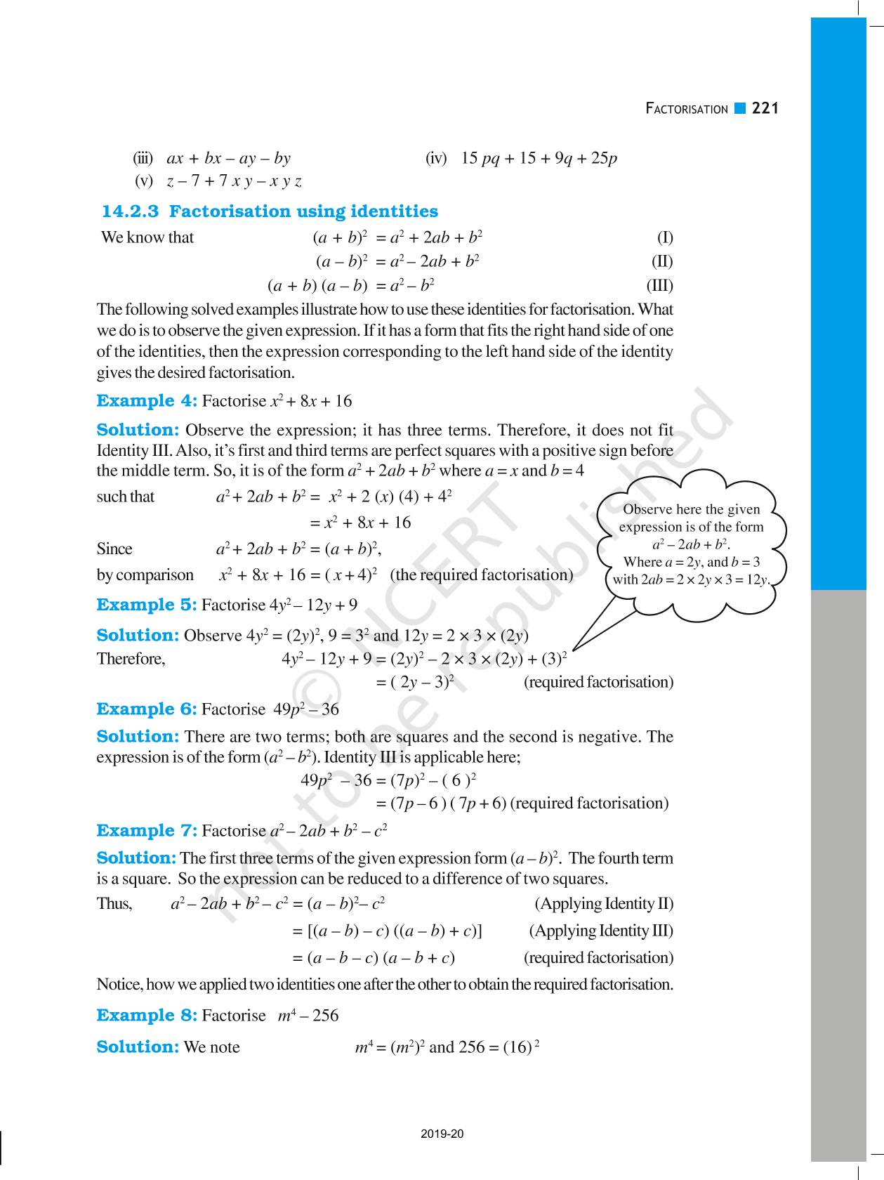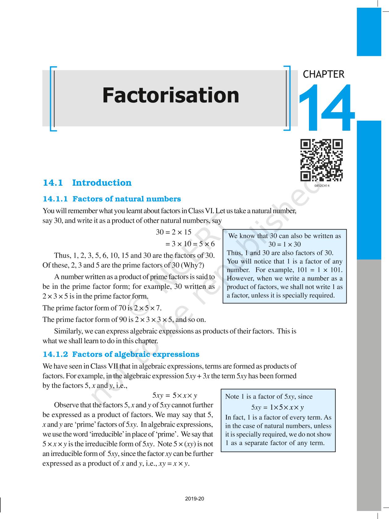 The time when students had limited options of choice for NCERT books wherein they need to go to the bookstore to buy the books but here at BeTrained.in, you can read the complete chapter-Factorisation of NCERT books for class 8 Mathematics. If CBSE class 8 students are finding it hard to search for NCERT Mathematics books online, then this is the right place as we have provided the textbooks of NCERT chapter wise. These books are available on our website for free along with NCERT Solutions and Exemplar solutions.