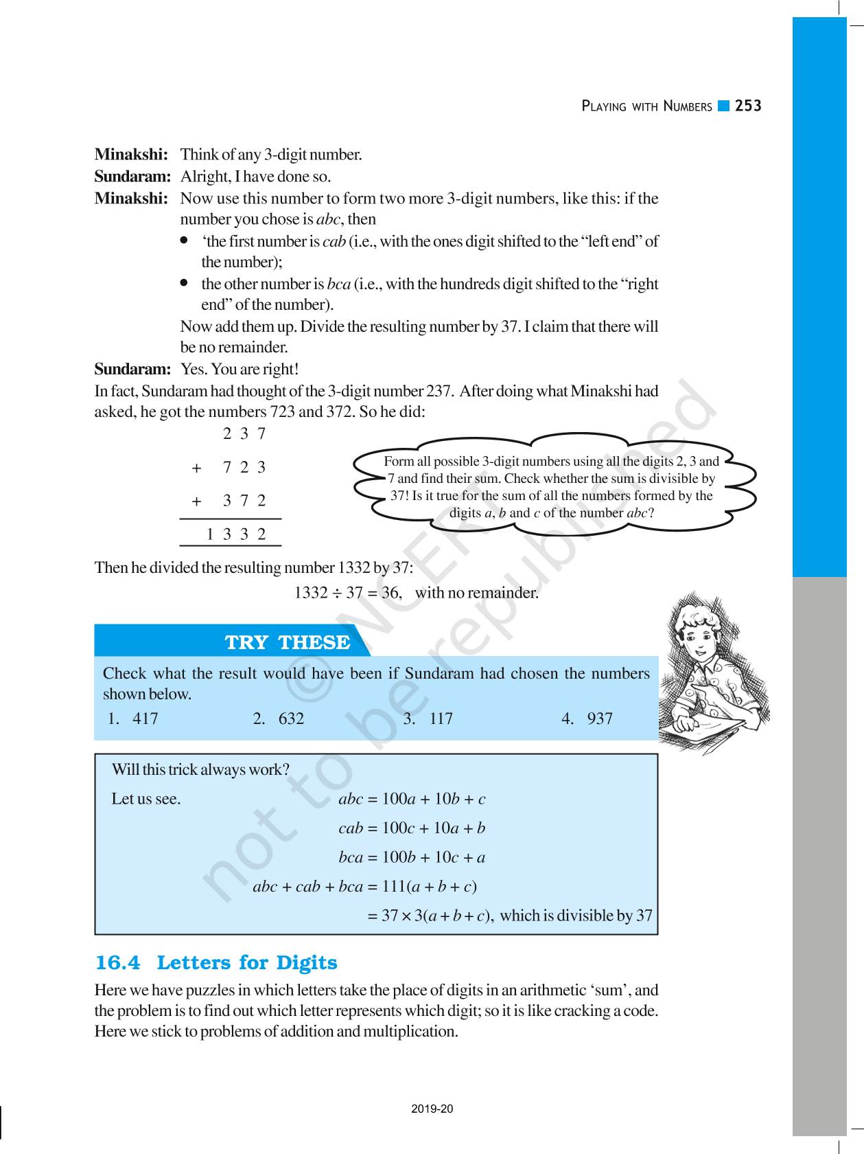 The time when students had limited options of choice for NCERT books wherein they need to go to the bookstore to buy the books but here at BeTrained.in, you can read the complete chapter-Playing With Numbers of NCERT books for class 8 Mathematics. If CBSE class 8 students are finding it hard to search for NCERT Mathematics books online, then this is the right place as we have provided the textbooks of NCERT chapter wise. These books are available on our website for free along with NCERT Solutions and Exemplar solutions.