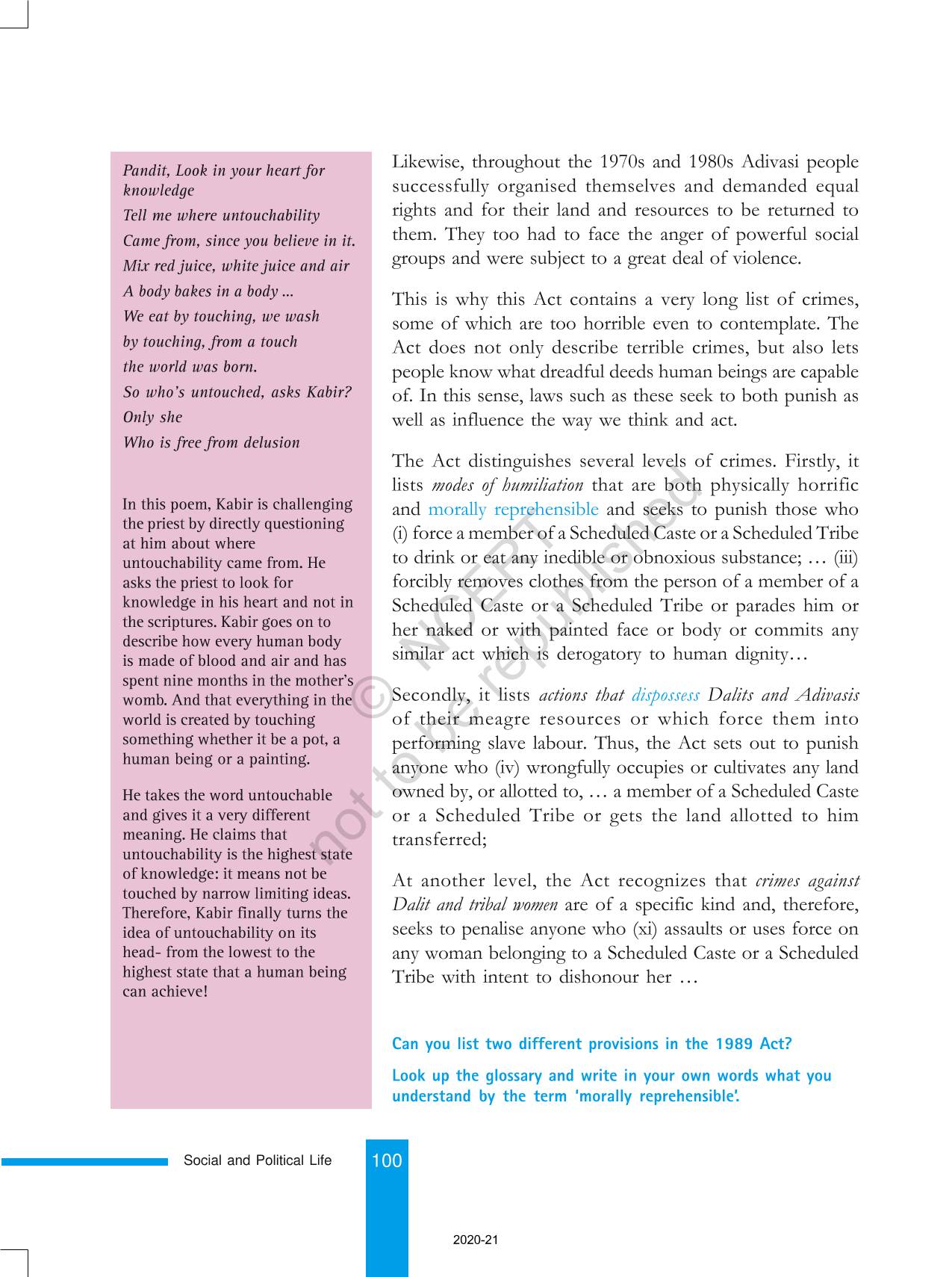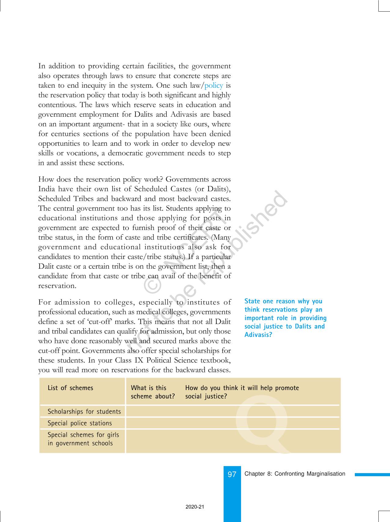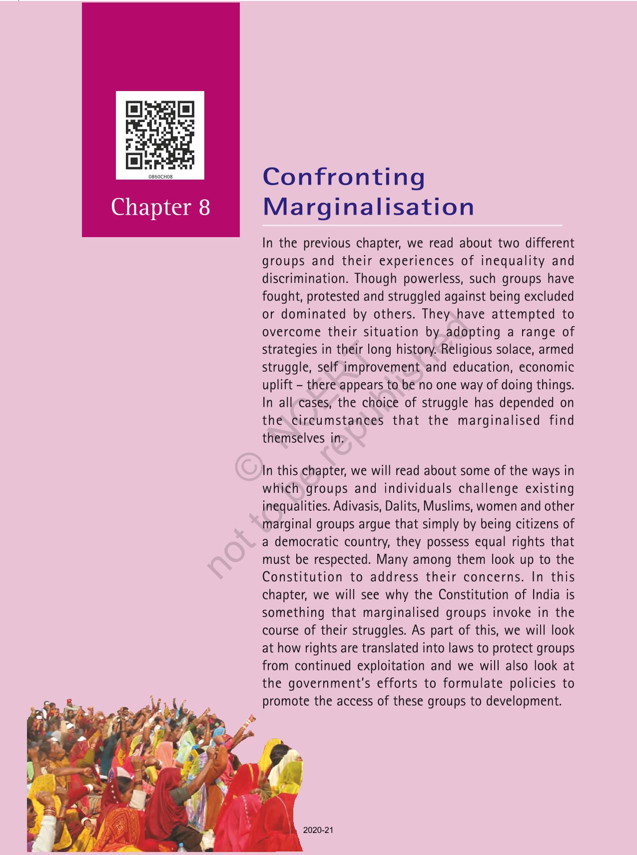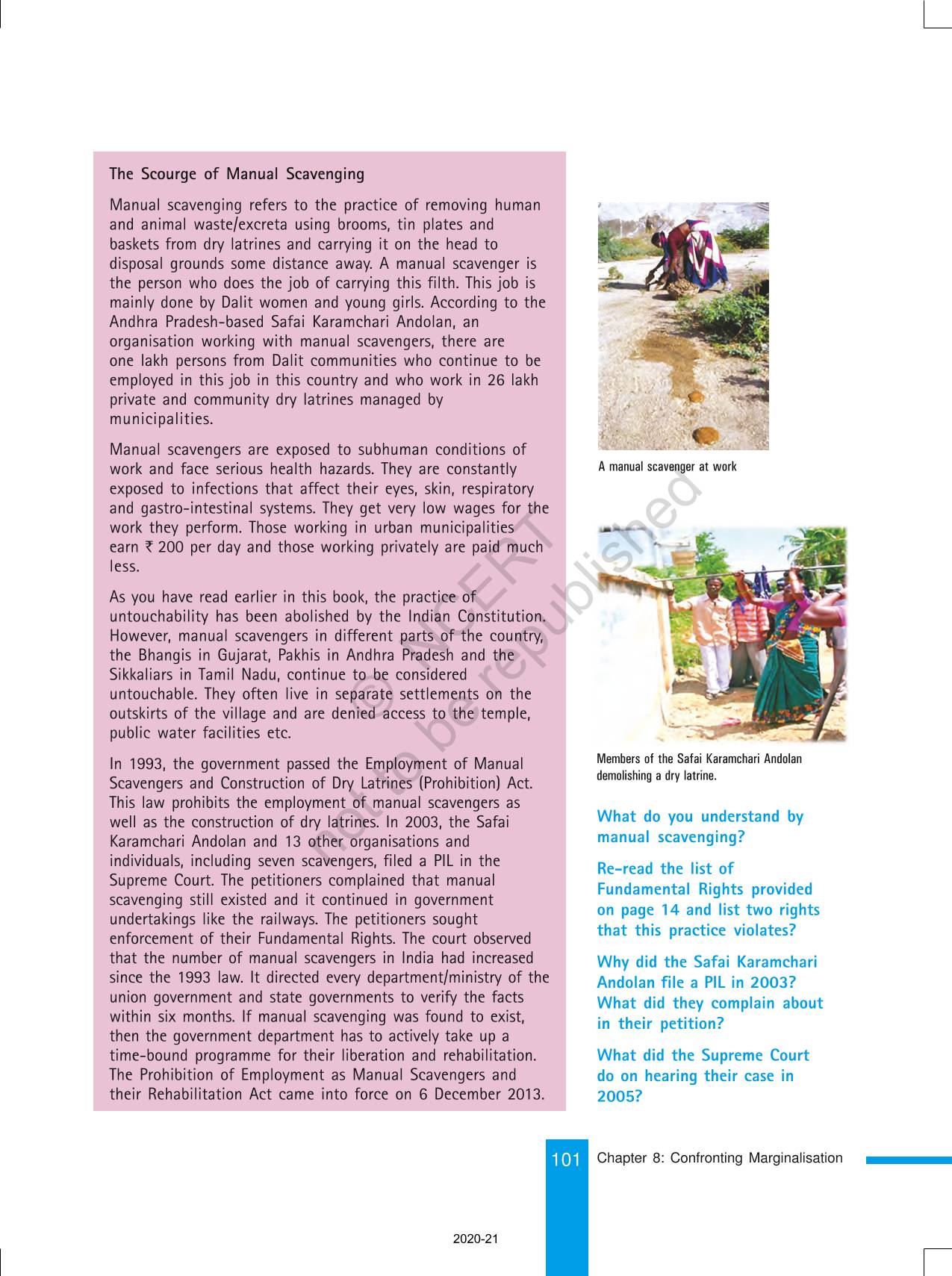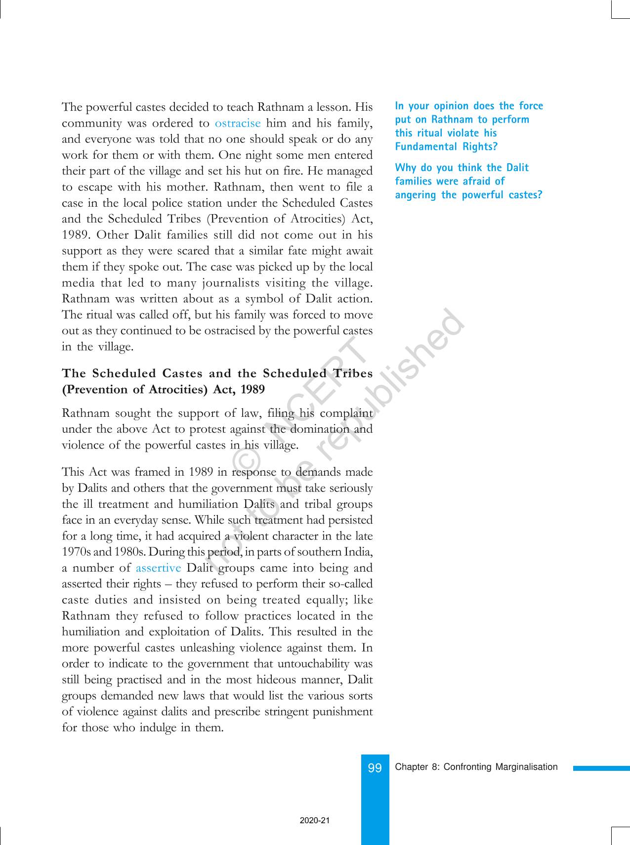 The time when students had limited options of choice for NCERT books wherein they need to go to the bookstore to buy the books but here at BeTrained.in, you can read the complete chapter-Confronting Marginalisaton of NCERT books for class 8 Social And Political Life III. If CBSE class 8 students are finding it hard to search for NCERT Social And Political Life III books online, then this is the right place as we have provided the textbooks of NCERT chapter wise. These books are available on our website for free along with NCERT Solutions and Exemplar solutions.