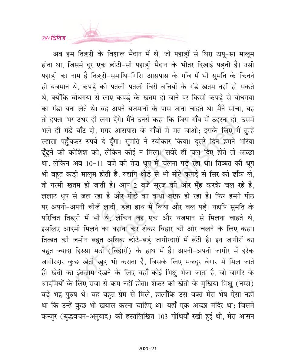 The time when students had limited options of choice for NCERT books wherein they need to go to the bookstore to buy the books but here at BeTrained.in, you can read the complete chapter-Lhasa Ki Or of NCERT books for class 9 Hindi Kshitij Part 1. If CBSE class 9 students are finding it hard to search for NCERT Hindi Kshitij Part 1 books online, then this is the right place as we have provided the textbooks of NCERT chapter wise. These books are available on our website for free along with NCERT Solutions and Exemplar solutions.