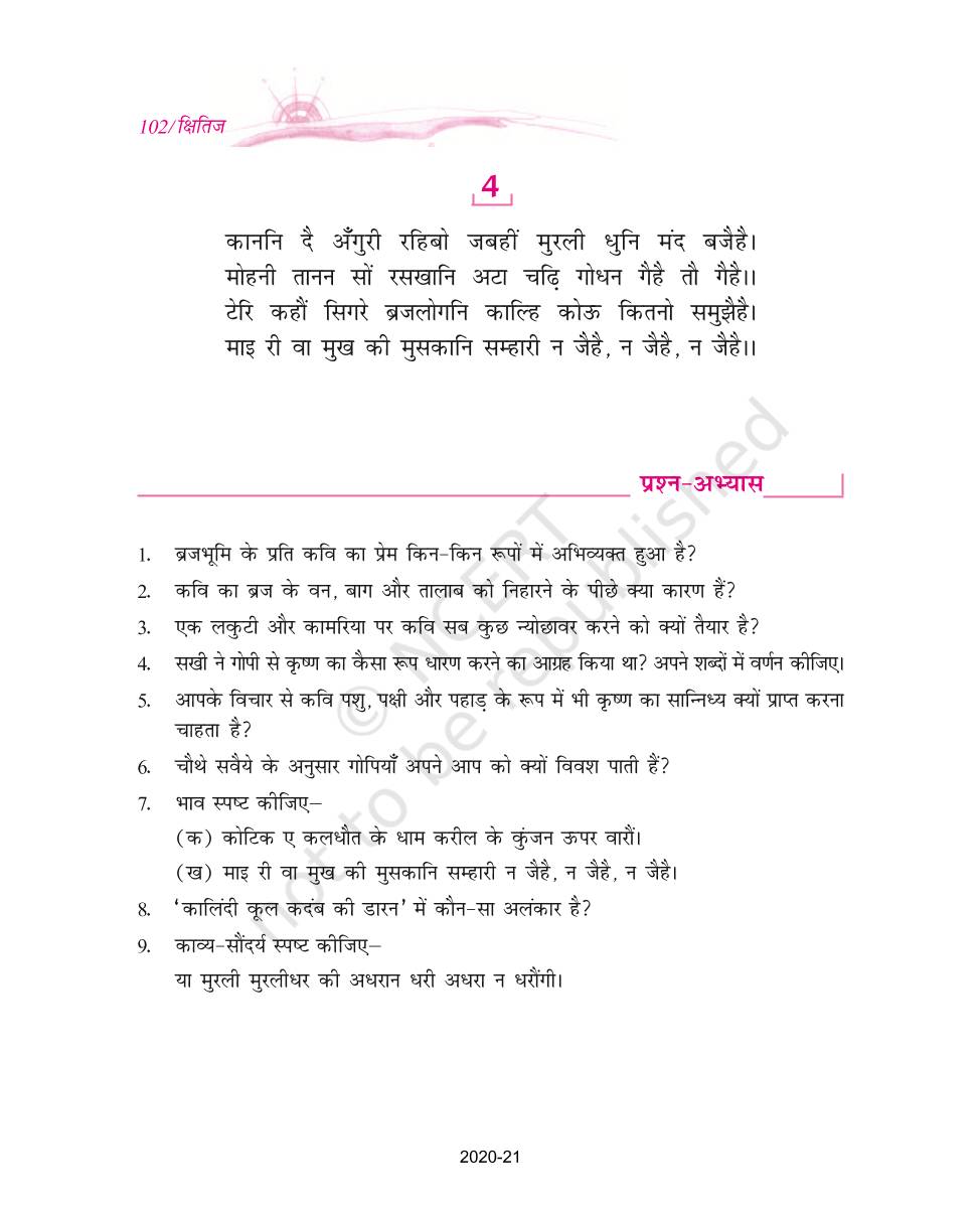 The time when students had limited options of choice for NCERT books wherein they need to go to the bookstore to buy the books but here at BeTrained.in, you can read the complete chapter-Savaiye of NCERT books for class 9 Hindi Kshitij Part 1. If CBSE class 9 students are finding it hard to search for NCERT Hindi Kshitij Part 1 books online, then this is the right place as we have provided the textbooks of NCERT chapter wise. These books are available on our website for free along with NCERT Solutions and Exemplar solutions.