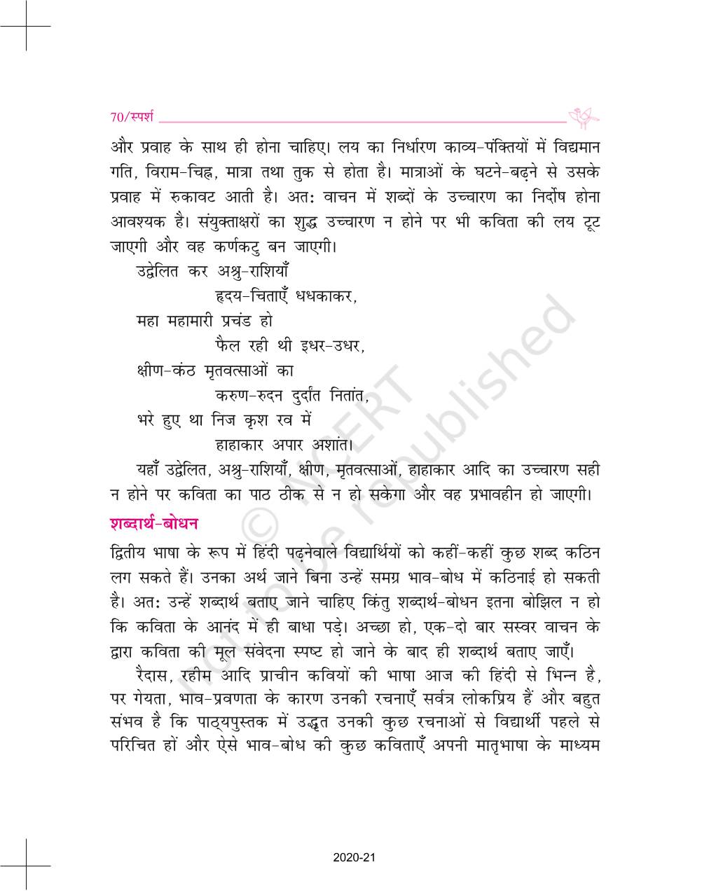 BeTrained.in has brought the NCERT books for class 9 Hindi Sparsh Part 1 where you can find every topic explained in a detailed way. These books are recommended by CBSE and some other state boards. Most of the teachers also use these books for teaching in schools. It is also used as a reference to prepare the questions for mid-term and final exams. The topics are explained in a very easy language along with examples and diagrams. Also, ideal for comprehensive and thorough learning to develop a clear concept. The chapters in the books have illustrative examples and practice problems for getting a hold of any kind of concept.