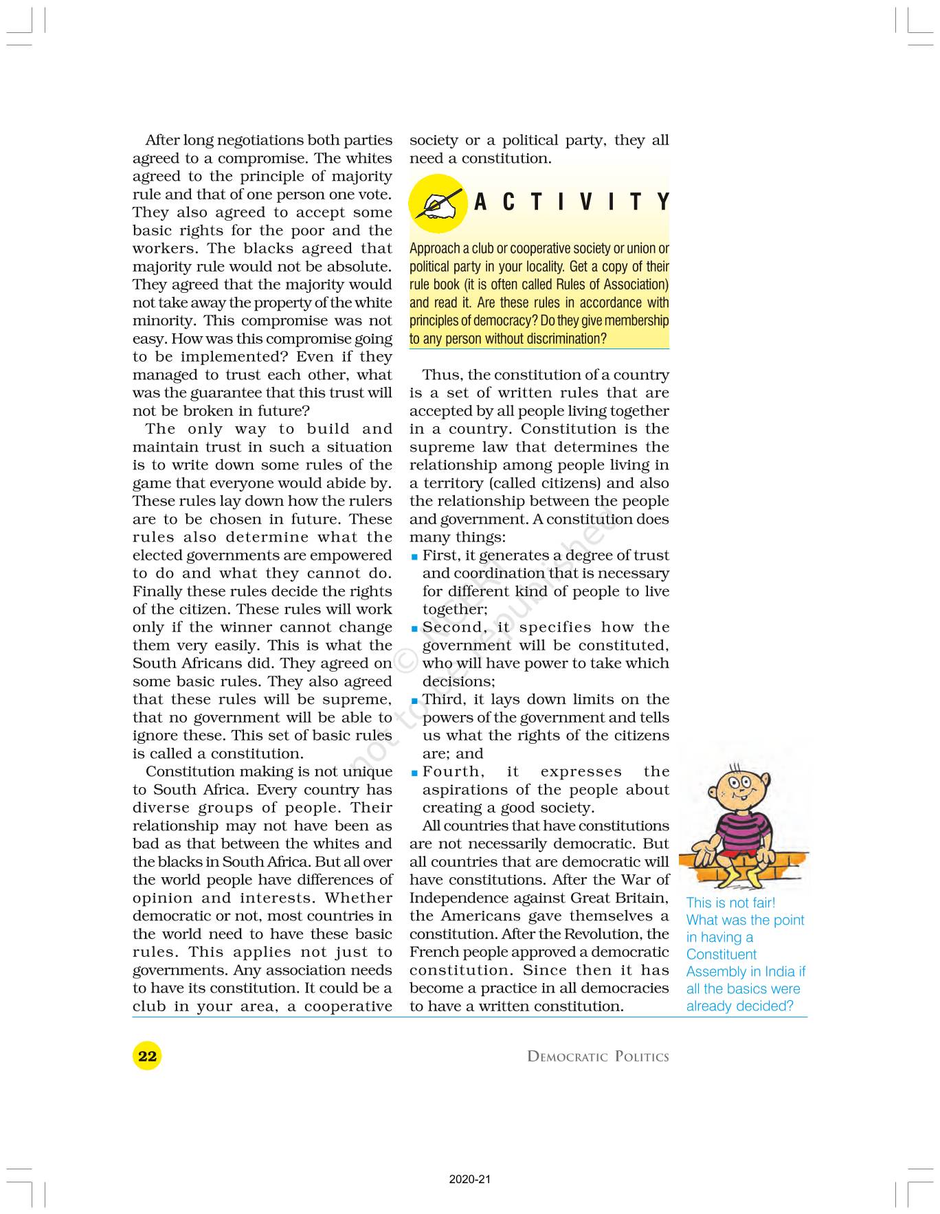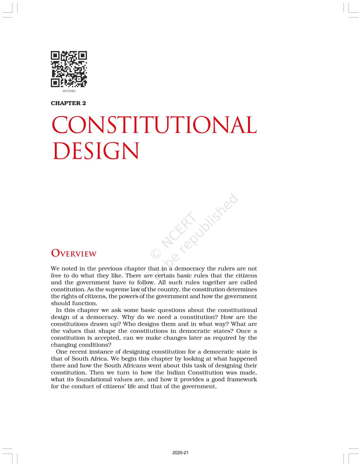 The time when students had limited options of choice for NCERT books wherein they need to go to the bookstore to buy the books but here at BeTrained.in, you can read the complete chapter-Constitutional Design of NCERT books for class 9 Political Science Democratic Politics I. If CBSE class 9 students are finding it hard to search for NCERT Political Science Democratic Politics I books online, then this is the right place as we have provided the textbooks of NCERT chapter wise. These books are available on our website for free along with NCERT Solutions and Exemplar solutions.