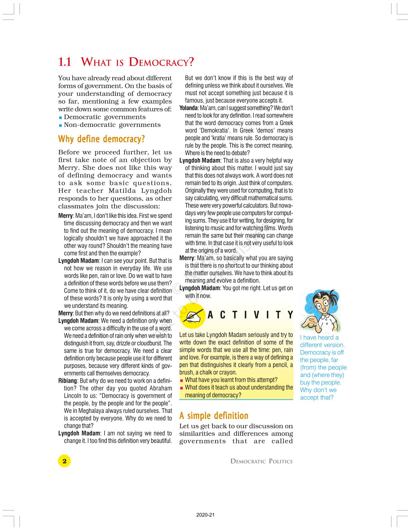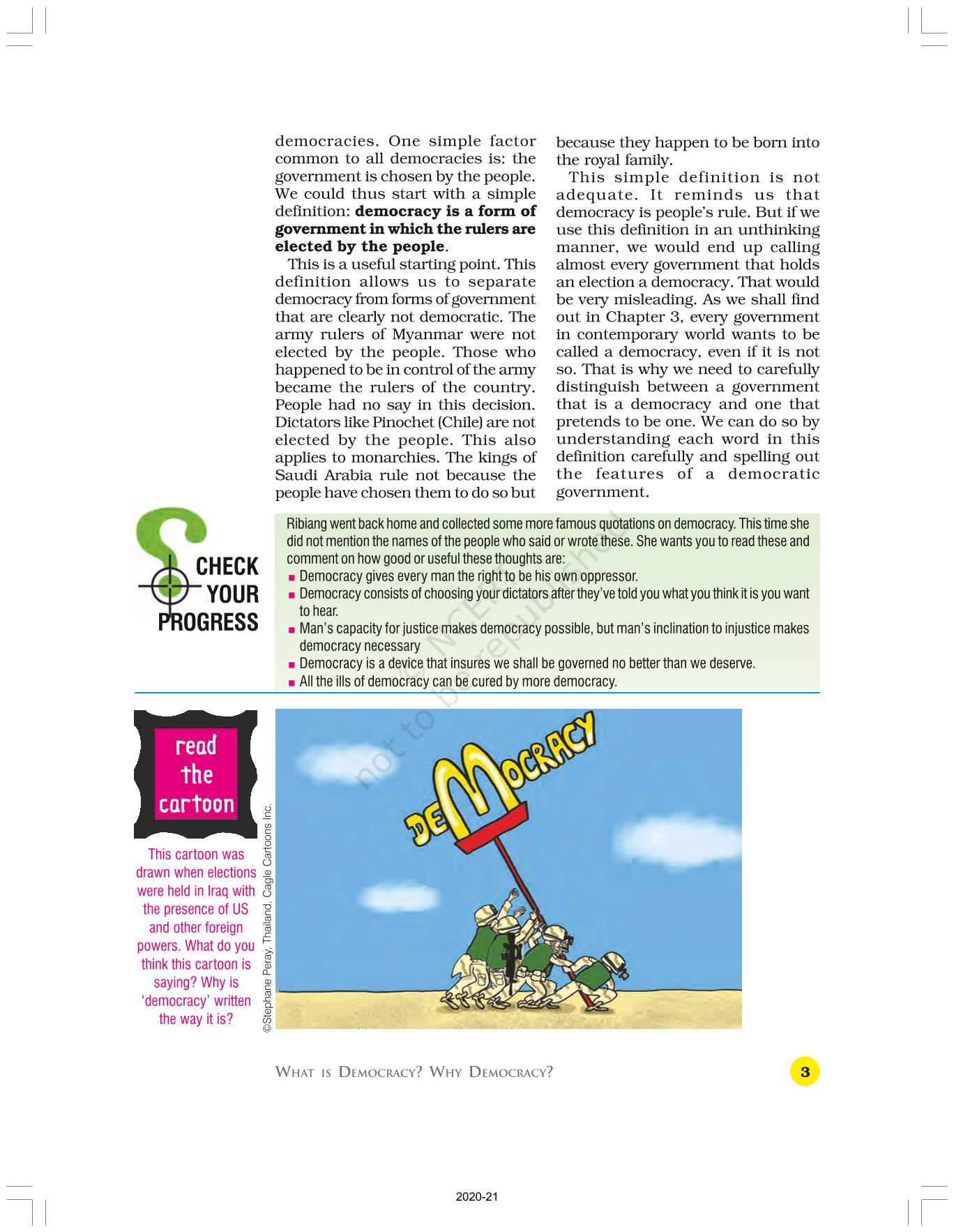 The time when students had limited options of choice for NCERT books wherein they need to go to the bookstore to buy the books but here at BeTrained.in, you can read the complete chapter-What Is Democracy Why Democracy of NCERT books for class 9 Political Science Democratic Politics I. If CBSE class 9 students are finding it hard to search for NCERT Political Science Democratic Politics I books online, then this is the right place as we have provided the textbooks of NCERT chapter wise. These books are available on our website for free along with NCERT Solutions and Exemplar solutions.