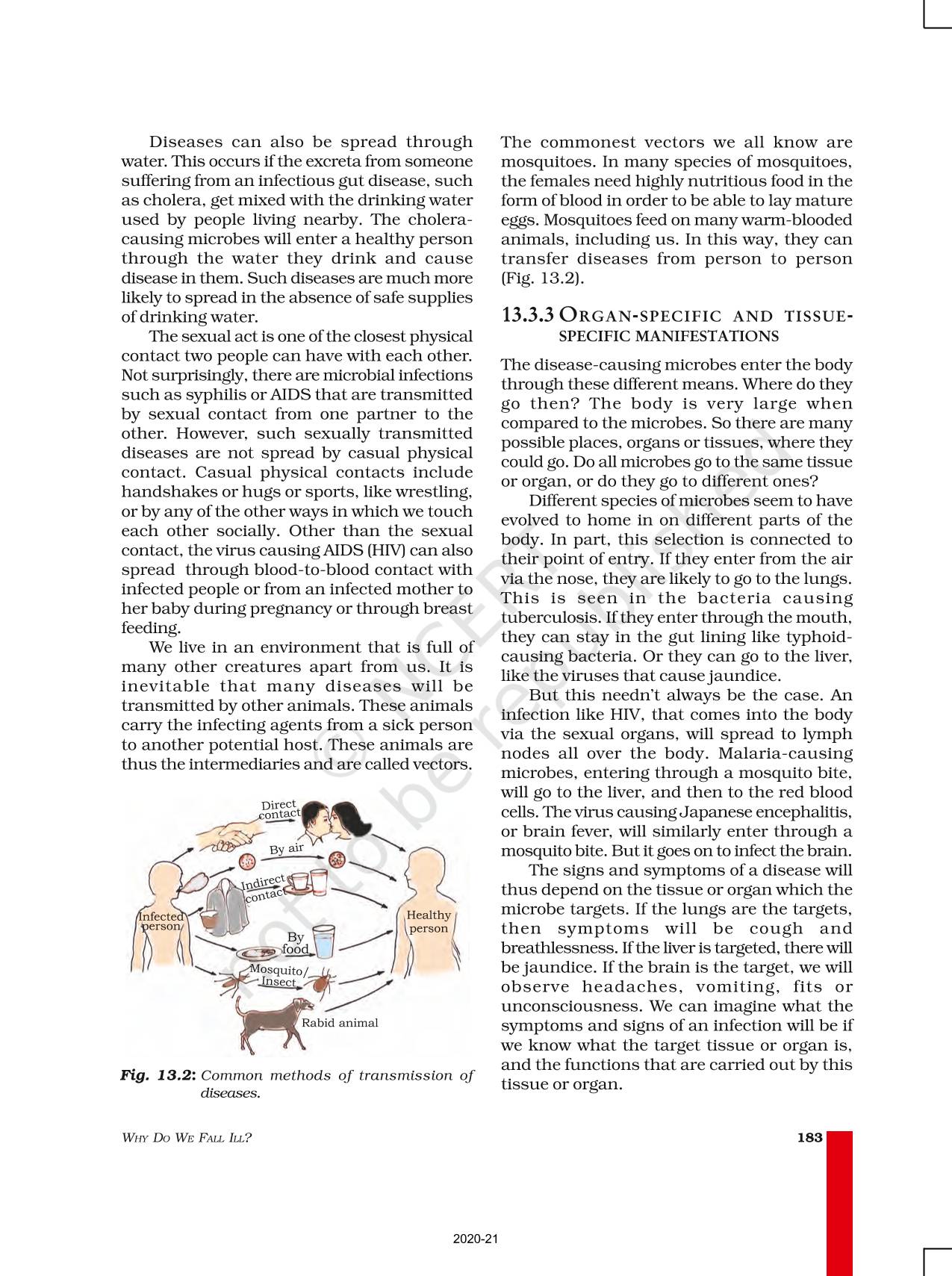 • Infectious agents are spread through air, water, physical contact or vectors.
